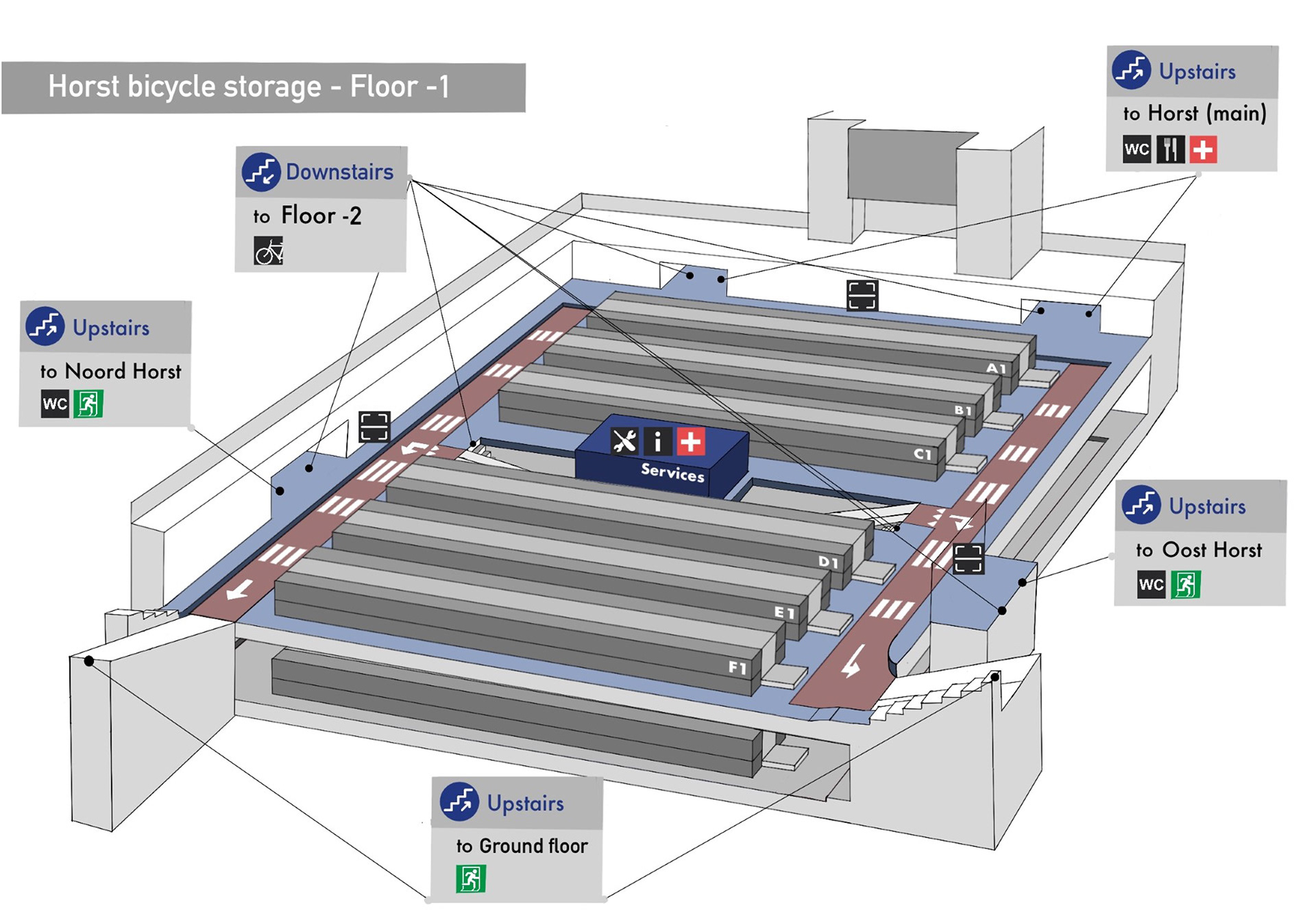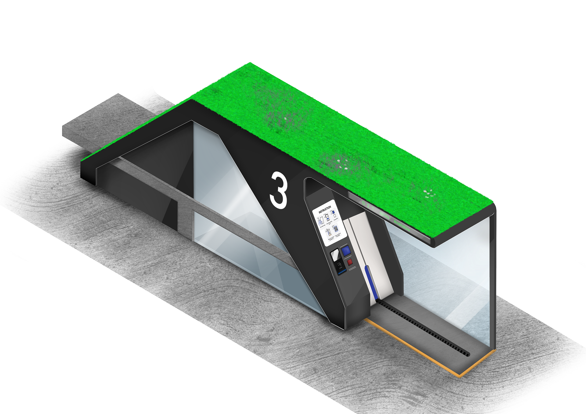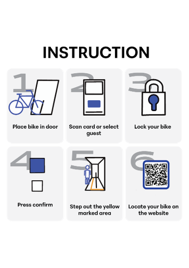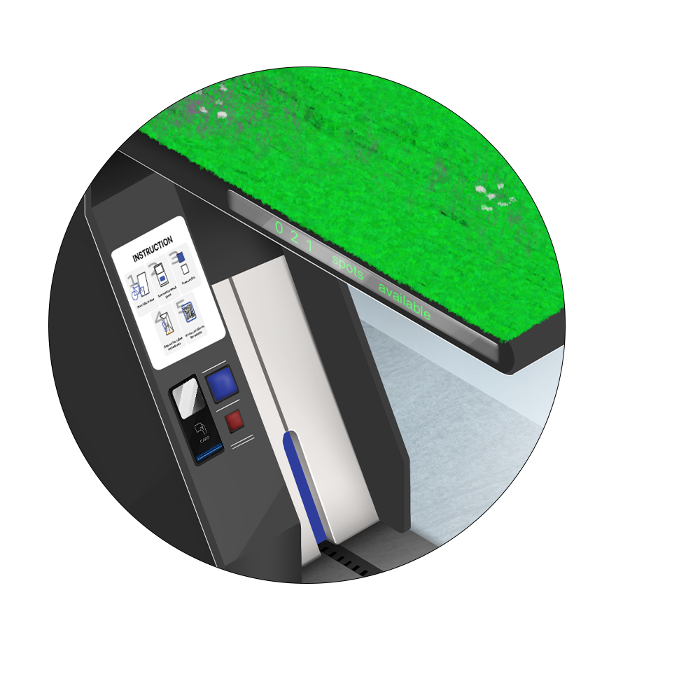 The storage system had to be placed in a specific location and was designed in a human- centered way. For newcomers, instructions are provided on the interfaces of the system, but it also allows for regular visitors to quickly drop their bike without having second thoughts. People can drop off their bike in seconds and later find it back with guidance in an underground storage.